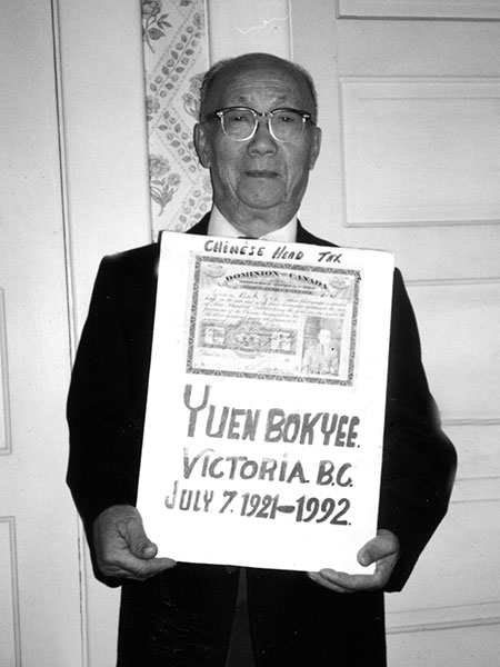 Yuen Bok Yee “Buddy Leeds” displays his head tax certificate.