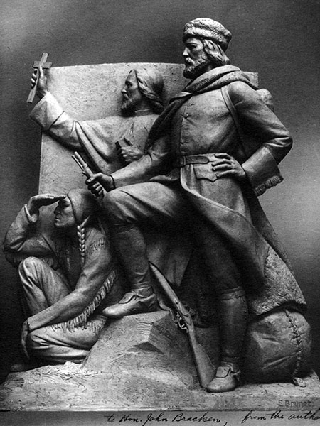 Istas Invenit Terras Easque Humanitati et Fidei Aperuit. A sculpture of La Vérendrye unveiled on Taché Avenue during bicentenary celebrations in 1938 featured this Latin inscription meaning “he discovered these lands and opened them to humanity and the faith.”