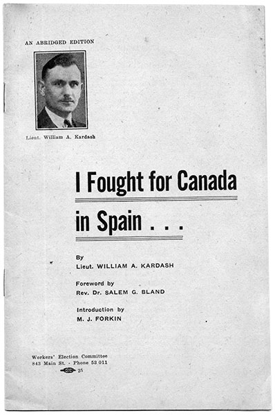 Fighting fascism. Around 1938, Kardash wrote about his service with the Mackenzie-Papineau (Mac-Pap) Battalion in the Spanish Civil War, during which he lost his right leg.