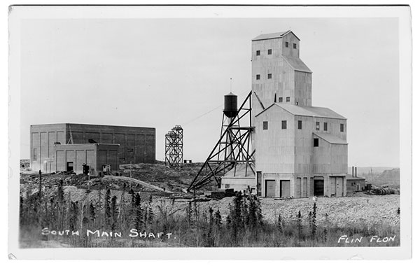 Postcard of the Flin Flon mine shaft, late 1920s.