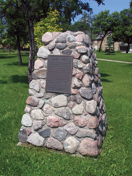 A small cairn in Joseph Zuken Heritage Park near the MHS’s Ross House Museum commemorates the spot where, on 7 October 1812, Miles Macdonell helped to plant the bushel and a half of wheat brought from Scotland on behalf of Lord Selkirk. It was the beginning of the “prairie breadbasket” in western Canada that would eventually become an important component of the global food supply. The cairn was dedicated in October 1987 by members of the Lord Selkirk Association of Rupertsland.