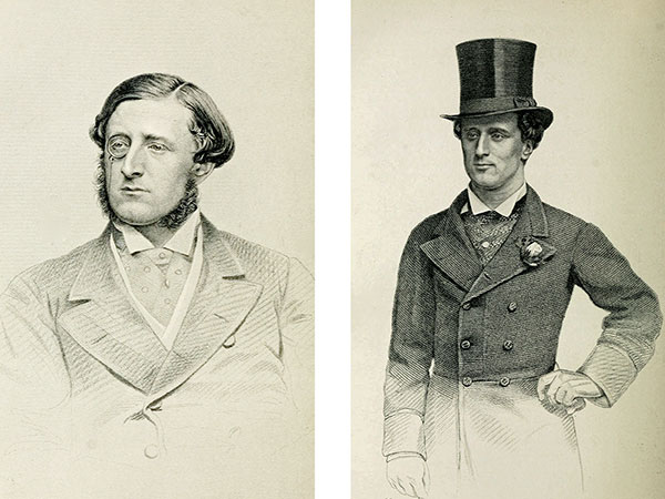 Young and wealthy English adventurers Henry Chaplin (1840–1923, left) and Frederick Johnstone (1841–1913, right), accompanied by Arctic explorer John Rae and Métis guide James McKay with three Red River carts and two wagons, took the Assiniboine Rapids crossing to the buffalo plains in June 1861.
