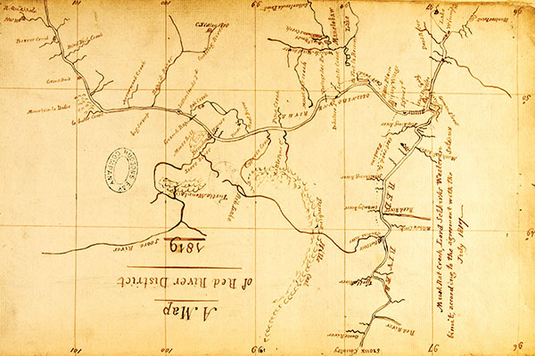 18. Peter Fidler, “A Map of Red River District 1819” in Brandon House and Upper Red River District reports, Red River District report, 1819, HBCA B.22/e/1.