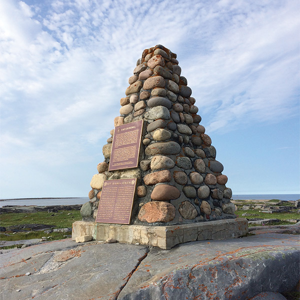 A cairn at the mouth of the Churchill River, erected in 1920, bears a plaque from the Historic Sites and Monuments Board of Canada recognizing the historical significance of the area. Across the river, Jens Munk overwintered between 1619 and 1920. A wooden fort at Munk’s overwintering site was built by James Knight in 1717.
