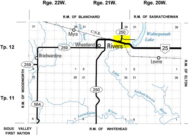Bradwardine, Carnegie, Deerboine Colony, Levine, Myra, Obodo, Pendennis, Rivers, Westwood, Wheatland