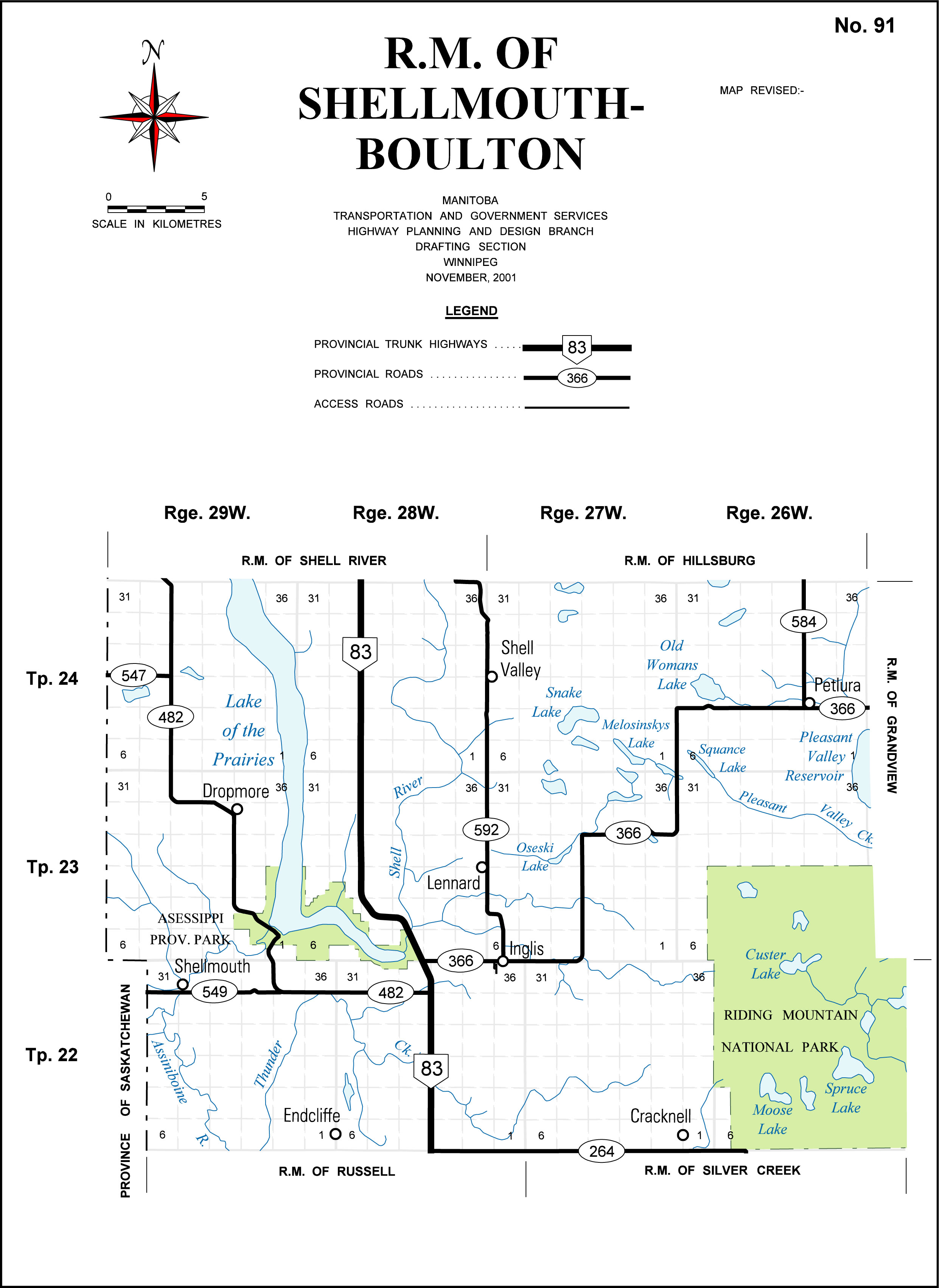 Asessippi, Cracknell, Dropmore, Endcliffe, Inglis, Lennard, Petlura, Shellmouth, Shell Valley