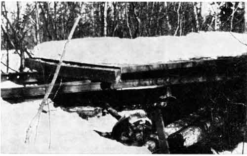 We left the steamer shortly after lunch, and finding no Indians or horses by the flat cars, which were looking rather dejected, forlorn and moss grown, and thoroughly incapable of motion, decided to walk to the far end of the track and canoe down the rapids anyway. So off we went four missionaries, a medical student, one nurse-to-be, and the writer. Kind friends on the boat had urged the necessity of heavy coats to avoid getting soaked in the rapid-running process. We had heeded, and were loaded down with trench coats. The first few miles were quite uneventful. Heavy timber closed us in on each side, and gay little flowers peered out from between the rotting ties on which the track was laid and from the edge of the solid green wall which closed us in, right and left. The country rose steadily in long undulating ridges. Every time we topped a rise it was only to see another and higher one beckoning us on. And then the nurse-to-be lost the heel of her shoe. Now, losing a heel may not seem a tragedy to a man, but to a woman (especially when it is a French heel) well! We stopped, and the heel was hammered on, and re-hammered on at intervals of approximately every hundred yards. The business of topping ridges was getting a little monotonous; so we struck off along a little track to the left in hope of finding a shorter route to the rapids, but only found a native lime-kiln at the end of it. However, still with the spirit of explorers, we kept on through the bush. The going was getting more intricate every step, over fallen trees, under flopping branches, twigs in our hair, and our stockings in shreds; and all this under a burning sun. We resought the track. At last, having hopped, skipped and jumped over rotted and rotting ties for some five miles in all, we arrived at the north end of the rapids, to the accompaniment of thunder and black clouds which had been in the offing all afternoon. But -- No Indians were there; only two little Indian boys, offensively good natured, who grinningly assured us, "No men here. All gone. Canoe gone too." So. facing south, we retraced our aching way.