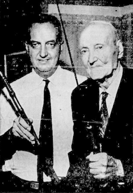 Mr. James T. Bourke (left) and Mr. John Hallett (right) with the sword.