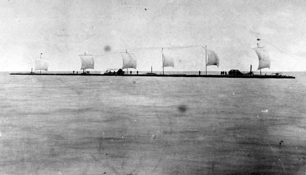 Lake Manitoba, 1891, raft containing 25,000 ties and 500,000 feet of lumber. Made up at Fairford by William Sifton, contractor for Peter McArthur, Westbourne Landing.