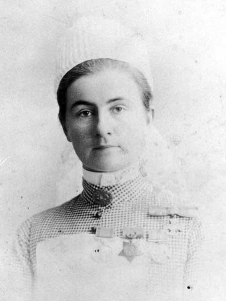 Born at Warwickshire, England in 1854, she trained at Queen’s Hospital before joining the nursing sisters in the British army. She served in a series of imperial campaigns in locations that included South Africa during the Zulu War, Egypt, and the Sudan. She was decorated in each of these campaigns, receiving the Royal Red Cross Medal in 1884. In that same year she moved to Auckland, New Zealand, to establish New Zealand’s first school of nursing, and in 1886 she married Dr. John Henry Richard Bond. She went to the United States with him, administering the British exhibit at the Chicago World’s Fair in 1893. The couple eventually settled in Winnipeg in 1903. She began urging the foundation of a children’s hospital in 1906, and in 1909 she began one on Beaconsfield Street which became the Winnipeg Children’s Hospital. She died there on 11 June 1943 as one of the few patients over the age of 14 ever admitted. She was buried in the St. John’s Cathedral Cemetery.