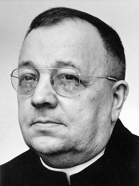 Born at Vikno, West Ukraine on 17 September 1893, he completed his high school education in Tarnopil and Lviv. After the First World War he studied theology at the Theological Seminary in Lviv and at the Catholic University in Innsbruck, Austria from which he received a doctorate in divinity in 1929. From 1930 to 1934 he taught at the Theological Seminary at Stanislaviv, Ukraine. He came to Canada in May 1934 and became a Ukrainian Catholic priest at Winnipeg. From 1947 to 1951 the Cathedral of Saints Vladimir and Olga was built under his leadership. In 1951 he was elevated to the position of Domestic Prelate by Pope Pius XII. He became Archbishop Major of the Ukrainian Catholic Church in 1968.