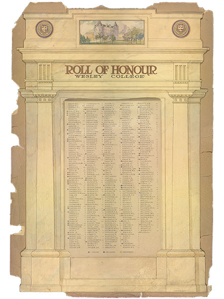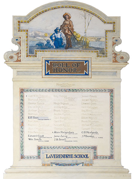 L. LeMoine FitzGerald, Wesley College roll of honour, 1917. Watercolour on paper, 101.7 x 69.3 cm.