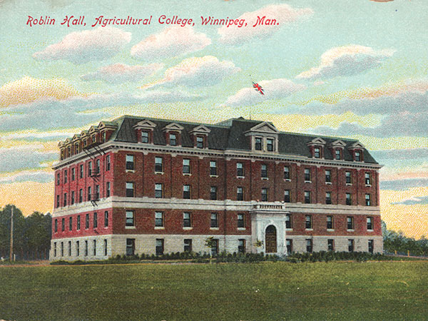Postcard view of the Manitoba Agricultural College, with Dufferin Hall at left (circa 1912)