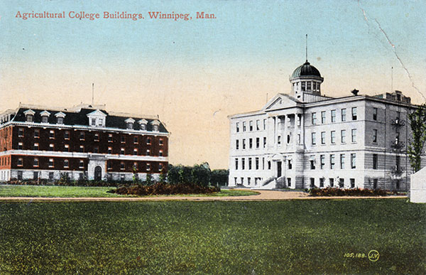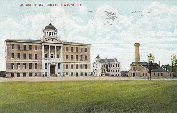 Postcard view of the former Manitoba Agricultural College buildings (circa 1908)