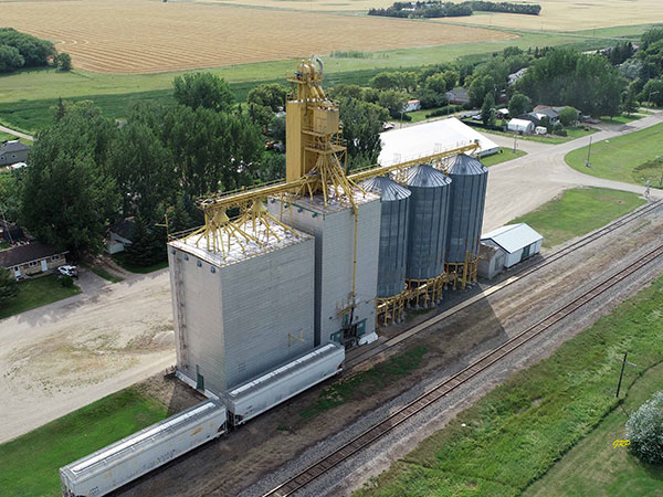 Aerial view of the former Manitoba Pool grain elevator at Alexander (August 2020)