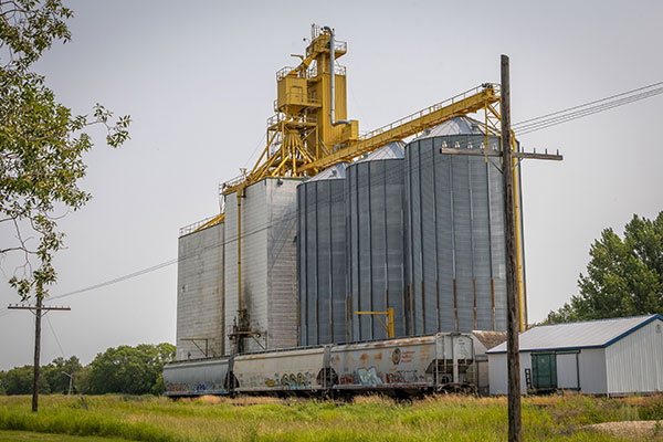 The former Manitoba Pool grain elevator at Alexander (July 2024)