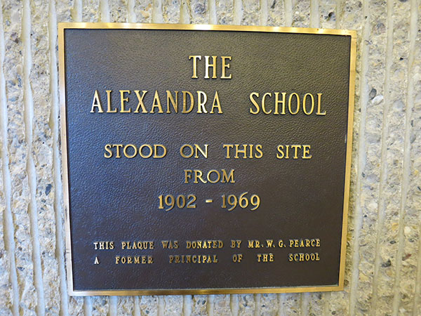 Commemorative plaque for Alexandra School at the Winnipeg Convention Centre (November 2014)