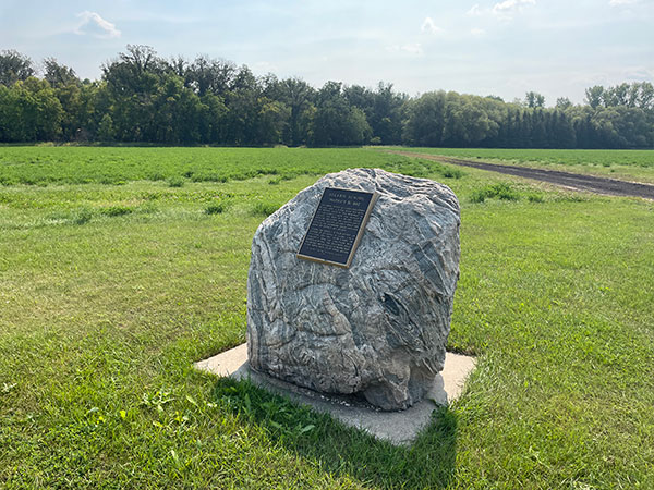 The Laurier School District was formed on 1 July 1896. A school house was built 400 meters south of this monument, in the Rural Municipality of St. Francois Xavier. In 1918 the district’s name was changed to Allarie, the name of a nearby ferry operator. This school, and another across the river, served students north and south of the Assiniboine River until 1934 when the district was divided. During the school’s 70-year history, an average of 25 pupils in grades 1 to 10 attended this one-room school. On 6 January 1966, the structure was destroyed by fire. The following year, the district was dissolved to become part of the White Horse Plain School Division.