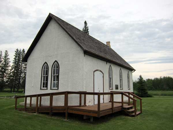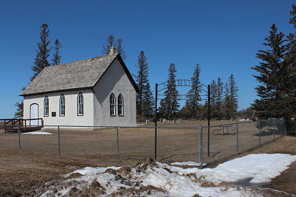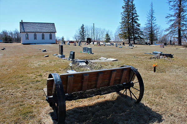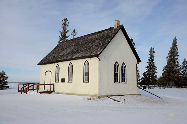 Built in 1884, this quaint Anglican church and cemetery are situated near East Shoal Lake in the Rural Municipality of Woodlands. Inside the church are the photographs and names of men from the municipality who served in the First World War (1914-1918) and the Second World War (1939-1945). A plaque on the exterior of the church lists seven men who were killed in the First World War, probably removed from a war memorial that had been unveiled on 25 September 1931 at a site near the shore of East Shoal Lake.