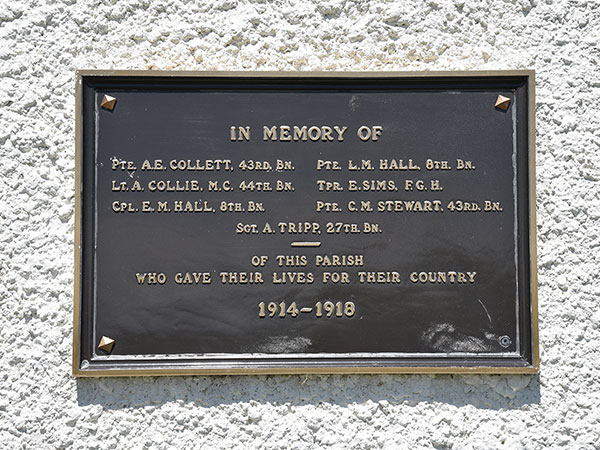 First World War commemorative plaque on the exterior of All Saints Anglican Church at Erinview (May 2019)