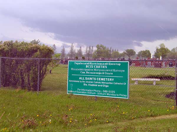 This cemetery in the Rural Municipality of West St. Paul includes part of the former Riverside Cemetery. The property was purchased by the Ukrainian Catholic Cathedral of Sts. Vladimir & Olga on 1 March 1920 and remains under the administration of the parish. It occupies 28 acres and contains approximately 10,000 graves.