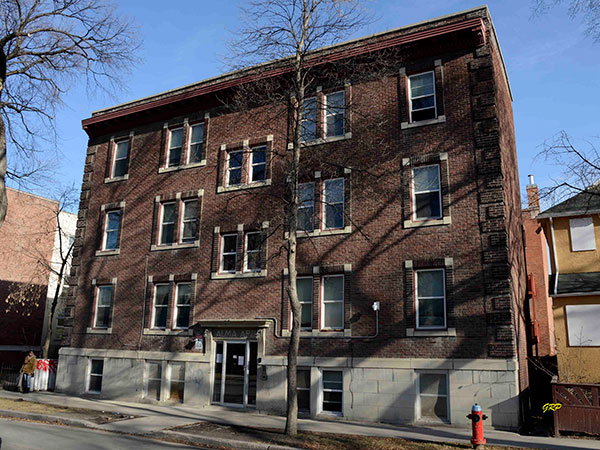 This three-storey brick and stone block on Young Street in Winnipeg, measuring 98 feet by 55 feet, was designed and built in 1914 by James Alexander Matthews at a cost of about $60,000. The building contained 28 apartments in its original configuration. It has 31 apartments today.