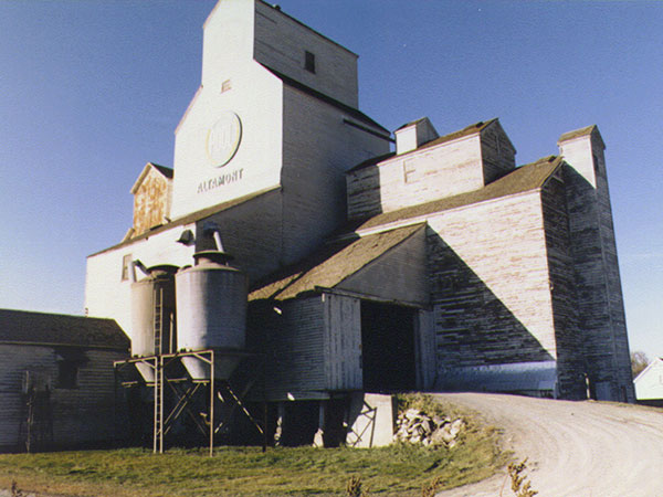 A wooden grain elevator in Altamont, on the CNR Miami Subdivision in the Municipality of Lorne, was built in 1932 by Federal Grain. Sold to Manitoba Pool in 1972, it closed in 1989 and was demolished sometime between 1995 and 1997.