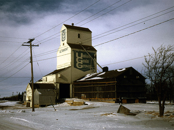 A wooden grain elevator in Altamont, on the CNR Miami Subdivision in the Municipality of Lorne, was built in 1925 by United Grain Growers, replacing an earlier elevator built by the Dominion Elevator Company and leased by the Manitoba government. Closed in 1993, it was demolished the following year.
