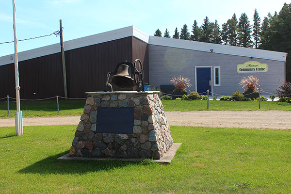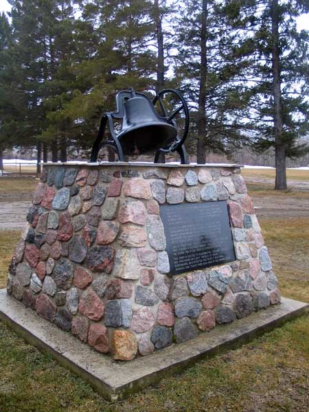 Formerly situated east of this site and known as Mussellboro School, the first two-room Altamont School was built in 1902, where Altamont Park is now (about N49.40040 W98.49284), in Altamont in what is now the Municipality of Lorne. In 1924, a two-room addition was made and, in 1958, upon consolidation with Deerwood School No. 926, Victory School No. 1143, and Sylvan School No. 1379, the Sylvan classroom was brought here to become a fifth classroom. It was later added to the United Church, which eventually became a library. The school building was torn down in 1961-1962 and the bell was salvaged for use on a monument commemorating the school and its teachers.