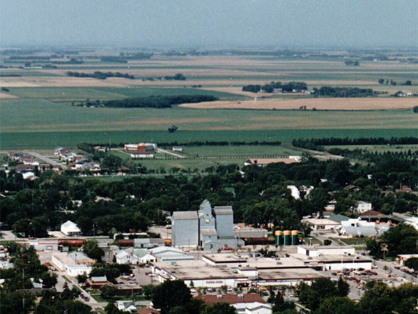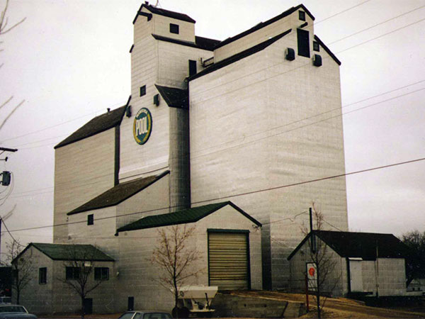 Aerial view of the Manitoba Pool grain elevator at Altona (1990s)