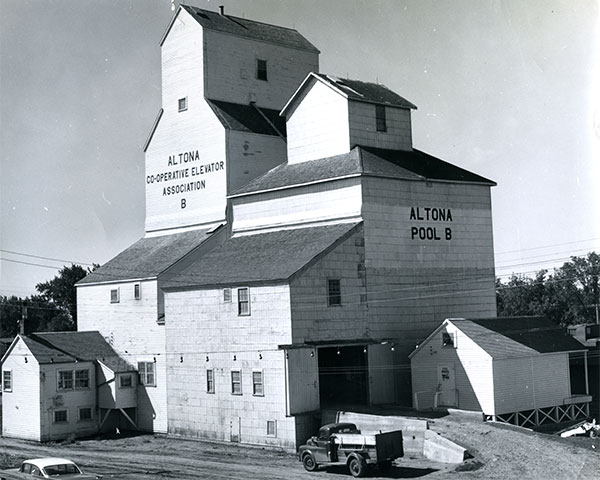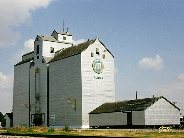 A 66,500-bushel wooden grain elevator at Altona, on the CPR Gretna Subdivision, was built in 1951 by Lake of the Woods Milling Company. Purchased by Manitoba Pool Elevators in 1959, it was the Pool B elevator until early 1965 when Pool's A elevator was moved to Plum Coulee. Crib annexes were built on each side of it in 1967 and 1969, and the elevator was fully renovated in 1970. Closed by Agricore in 2001, the elevator was later demolished.