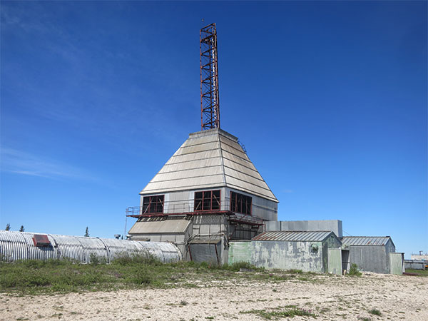 A T-shaped, metal-clad, two-storey building, about two miles southeast of Churchill, is a Cold War surveillance station established in late 1950 by the Royal Canadian Navy.