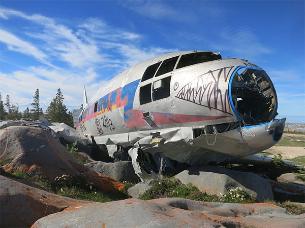 This Curtiss C-46 “Commando” twin-prop cargo aircraft crashed at 9:30 AM on 13 November 1979 as it attempted to return to the Churchill airport shortly after takeoff.
