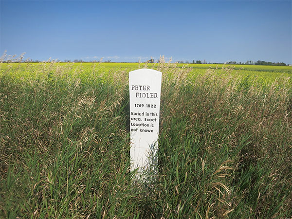 Fifteen miles northeast of Dauphin off #20. Early surveyor and map-maker Peter Fidler worked at Fort Dauphin (west shore of Dauphin Lake) from 1819 to 1822. He died on 17 December 1822 and was buried beside the fort. A wooden marker stands near the fort site although the actual grave site has been lost.