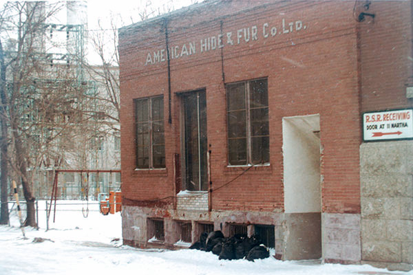 This Winnipeg property lot was initially addressed on both Rupert Avenue and Pacific Avenue. The site was partially acquired around 1904 by fur merchant Reuben Simon Robinson. Further to the purchase and export of animal hides, these premises were also used for tanning and curing them. A $50 shed that measured 12 feet by 16 feet was built by contractor J. Boyd in 1904 for Robinson, and that was accompanied in 1905 with another $200 storage building which measured 14 feet by 12 feet. An early partnership with fellow fur dealer B. Z. Levinson was discontinued around March 1906. The Robinsons initially resided at 157 Rupert and expanded their residence in 1906 with the addition of a stone basement, second storey, kitchen, and verandah, with architectural plans provided by Frank Robert Evans and construction undertaken by A. Palin & Company. As business grew, the Robinsons acquired a new residence at 42 Hargrave Street and moved their place of dwelling off-site.