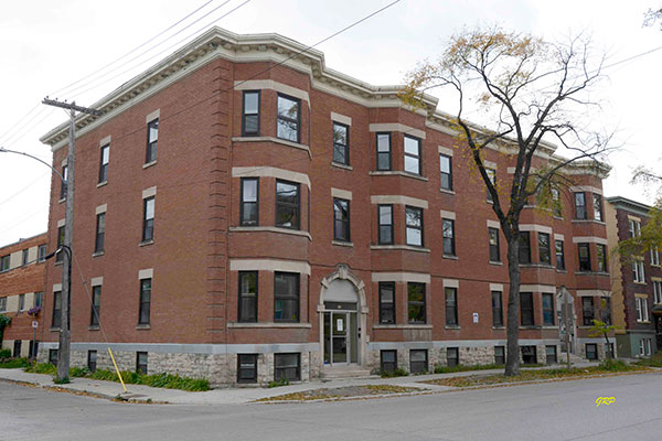This three-storey brick and stone apartment block on Westminster Avenue in Winnipeg was constructed in 1909 by William Wardell Cross for owner Richard Henry Lear at a cost of $33,000. The 53 by 98 foot building contained 14 apartments.
