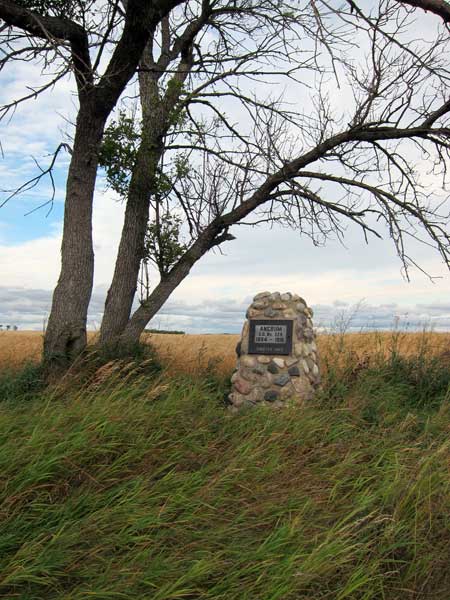 In 1884, the hamlet of Ancrum was established here in what is now the Municipality of Riverdale. Later, an Anglican church and community hall were built nearby. It was hoped, on arrival of the Great North West Central Railway (later purchased by the Canadian Pacific Railway) in 1902, that a train station would be built. Instead, the station was built at Bradwardine where some of Ancrum’s buildings were relocated. The Ancrum church and manse remained until after the end of the Second World War. The Ancrum Anglican Cemetery, located one mile north, remains in use.
