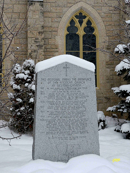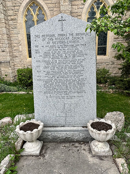 Monument commemorating the birthplace of the Anglican church in western Canada (May 2023)