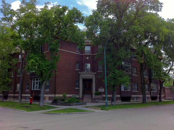 This three-storey brick block at the southeast corner of the intersection of McMillan Avenue and Arbuthnot Street in Winnipeg, measuring 100 feet by 60 feet, was designed by local architect Charles Saunders Bridgman and built in 1912 by the Claydon Brothers for the Belgo-Canadian Real Estate Company at a cost of about $110,000. The building, now a municipally-designated historic site, contained 24 apartments in its original configuration.