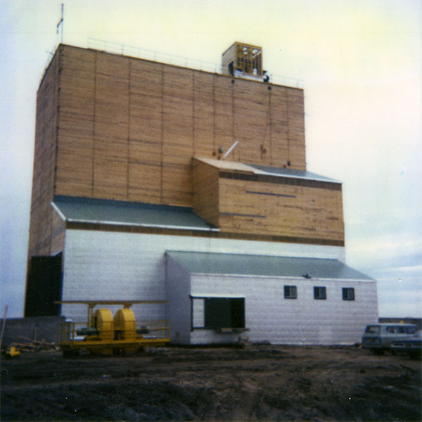 Manitoba Pool grain elevator D under construction at Arborg (October 1981)