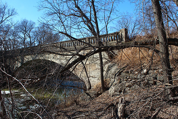 Concrete arch bridge over the Whitemud River near Arden (April 2021)