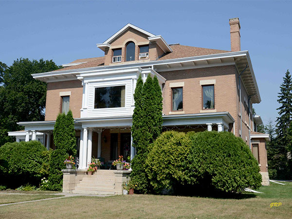 This two-storey brick house in Portage la Prairie was built in 1913 for politician Hugh Armstrong. It featured a ballroom and many modern amenities for its time.
