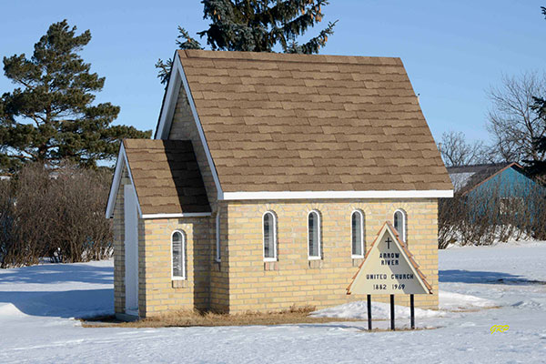 A marker and brick replica in Arrow River in the Municipality of Prairie View commemorates a United Church that operated here between 1882 and 1969.