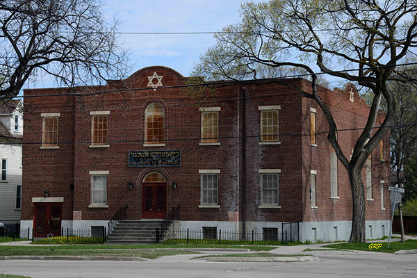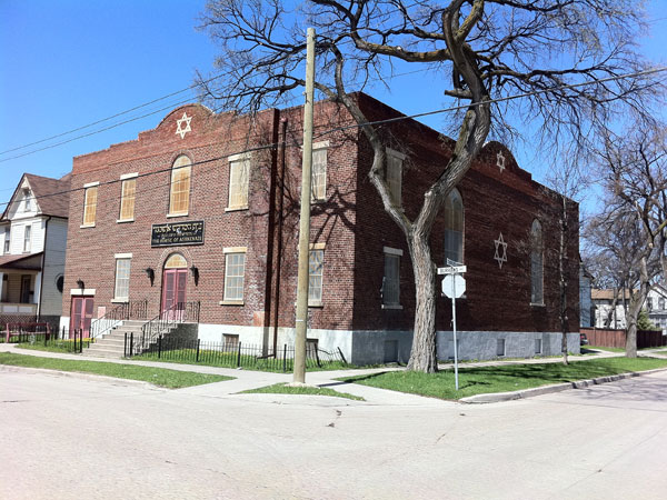 The original building was destroyed by fire on 5 April 1945 and, in 1948, it was replaced by a two-storey dark red-brown brick and Tyndall stone trimmed building measuring 60 feet by 80 feet. The House of Ashkenaze is now the oldest existing synagogue in Winnipeg with daily Orthodox Jewish services.
