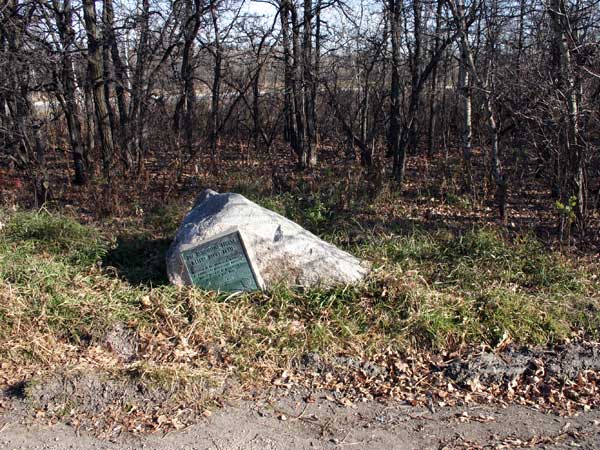Located at the northwest corner of the Assiniboine Forest at Roblin Boulevard, this plaque commemorates Winnipeg’s centennial year, 1974.
