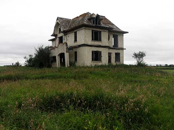 This once-grand house in the Municipality of Hamiota was constructed around 1913 for local farmer Arthur Atkinson (1872-1924). The house had a commanding view of the surrounding countryside, being situated on top of a small hill, with features uncommon even to urban residences of the time.