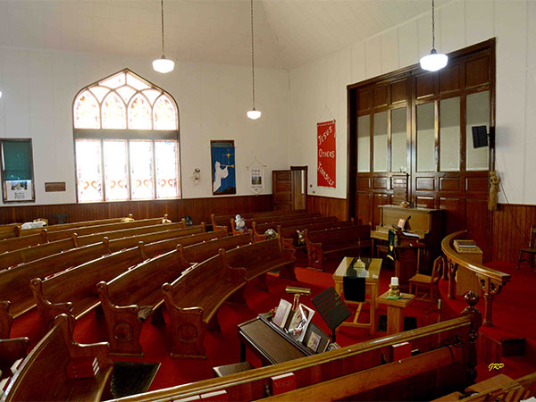 This former Methodist church on Second Street in Baldur in the Rural Municipality of Argyle, constructed of amber bricks in 1904 and dedicated on 14 October 1904, became a United Church in 1925 following the unification of its congregation with that of a Presbyterian church. Between 1930 and 1931, the former Presbyterian church built in 1900 was removed and its datestone was inserted into an exterior wall that remains visible today. The church is a municipally-designated historic building (1996).
