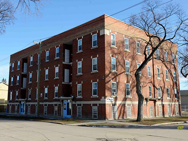 This three-storey brick block on Manitoba Avenue in Winnipeg, measuring 66 feet by 101 feet, was designed by architect David A. Abramovitch. Construction by the North Winnipeg Construction Company began in 1914. Three years later, the building was completed following additional design work by John Hamilton Gordon Russell. It contained 18 apartments in its original configuration.