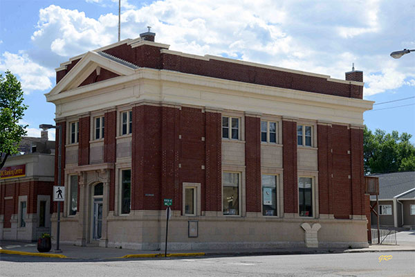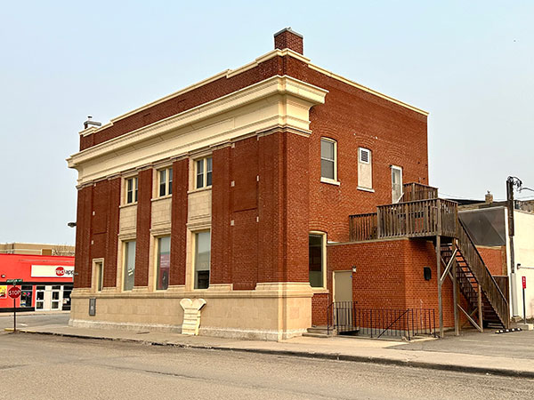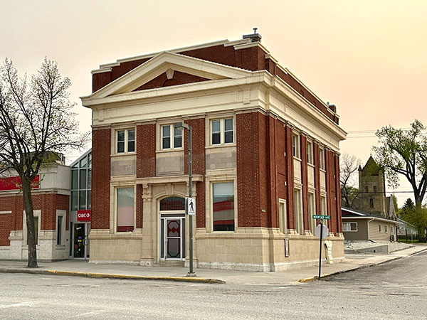 Designed by architect Victor Daniel Horsburgh and built in 1914, this two-storey brick and stone building on Mountain Avenue in Neepawa was formerly occupied by the Canadian Bank of Commerce.