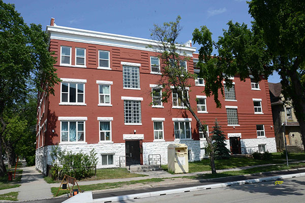 This three-storey brick and stone apartment block on Bannatyne Avenue in Winnipeg was designed by architect George William Northwood and built in 1910 by contractor William Wardell Cross for owner Charles Simpson Shipman. The cost of constructing the 72 by 42 foot building, containing 14 apartments, was $50,000.